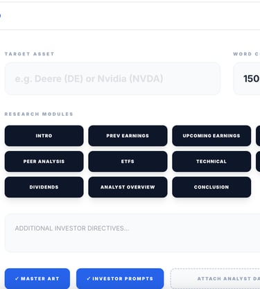 We guide you through transforming your investment ideas into functional applications. Whether you need a covered call screener, an earnings comparison dashboard, a dividend tracker or automated report generators, we facilitate the conversation between you and AI development tools to bring your concepts to life.